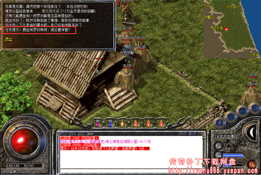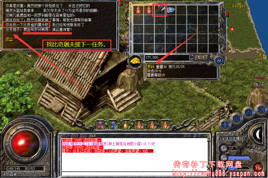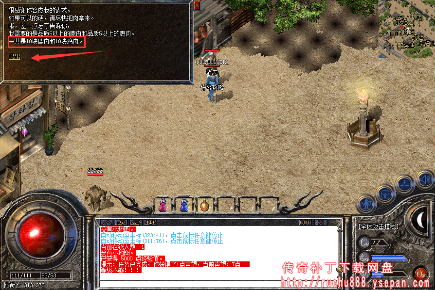 找来 NPC 需要的鹿肉和鸡肉各10块,交付任务。